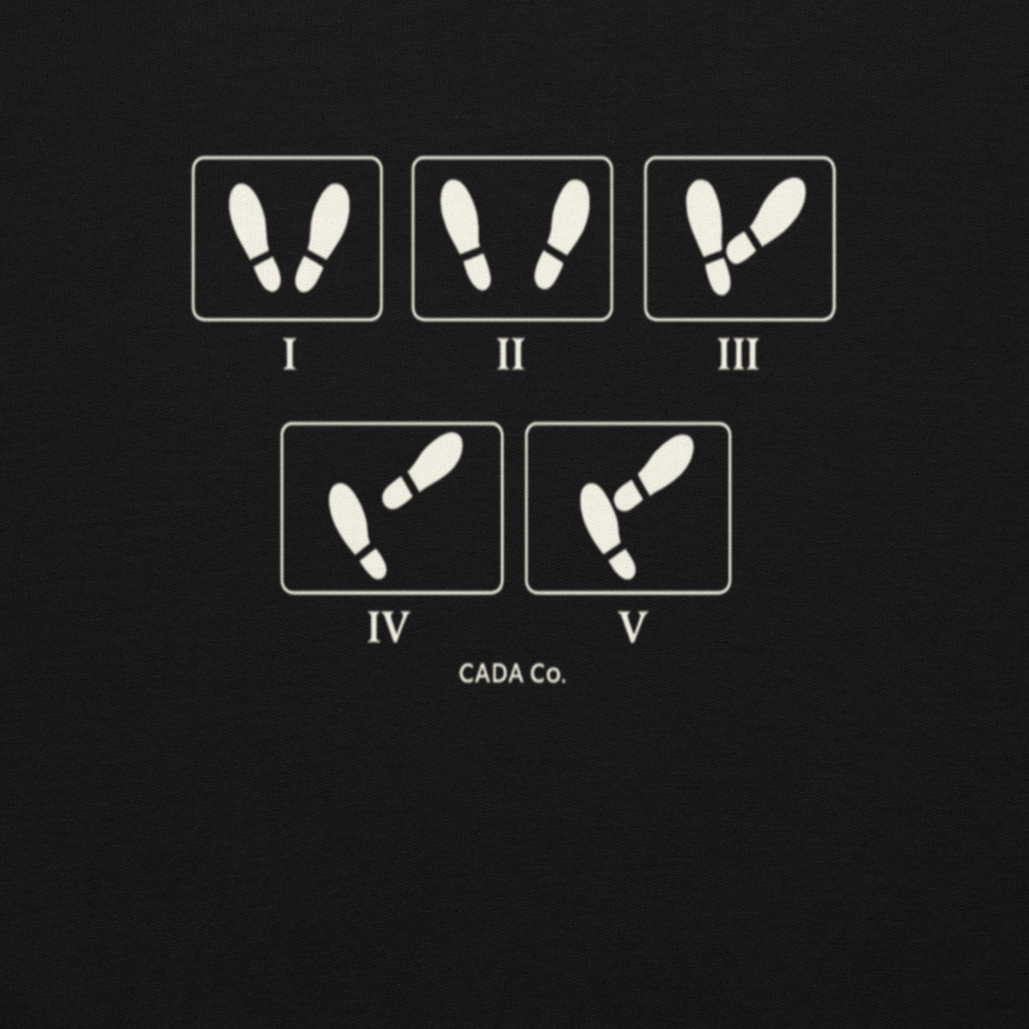 Featuring a minimalist dance floor footwork diagram, this design represents the structure behind choreography — the steps, the patterns, and the precision that make the performance come alive.