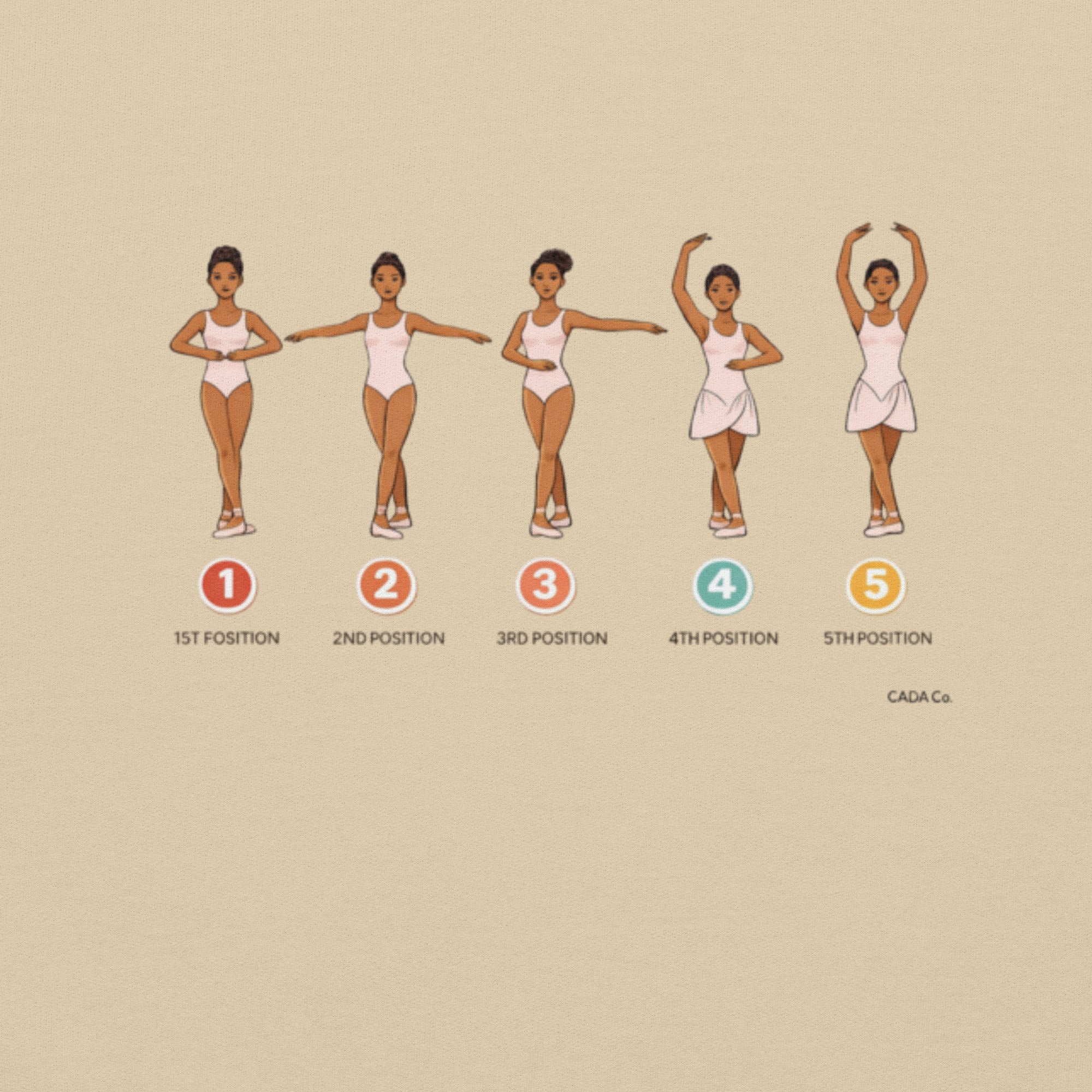 Featuring an illustrated guide of the five classical ballet positions, this design highlights the precision, grace, and discipline that every dancer learns at the barre.